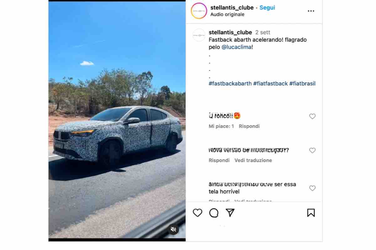 Questo avvistamento apparentemente del tutto fortuito del nuovissimo SUV Abarth Fastback in fase di test è avvenuto in Brasile, come confermano i commenti in lingua portoghese che lasciano intendere un grande entusiasmo per l’arrivo del mezzo. La livrea mimetica impedisce di capire tutto sul mezzo, ma abbiamo giù qualche specifica in merito.