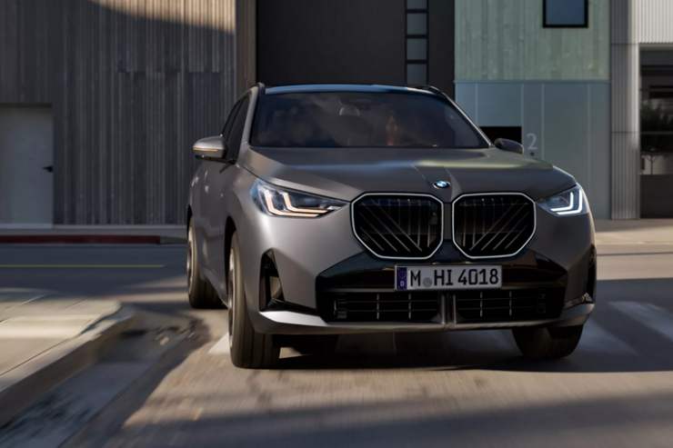 Sul frontale, emerge il nuovo sguardo a doppia L che è una novità assoluta per la X3, con le versioni base che accolgono una calandra a doppio rene con un incrocio tra i listelli, neri sulle varianti M Sport. Le maniglie sono a filo con la carrozzeria per migliorare l’aerodinamica, che raggiunge un Cx di 0,27 con cerchi che arrivano sino a 21″. A bordo la BMW X3 lascia tanto spazio per i bagagli con capienza minima di 570 litri nel bagagliaio, mentre la plancia è minimalista, con pochi tasti fisici che si trovano nel tunnel centrale. Presenti anche due prese USB-C ed un doppio portabicchieri.