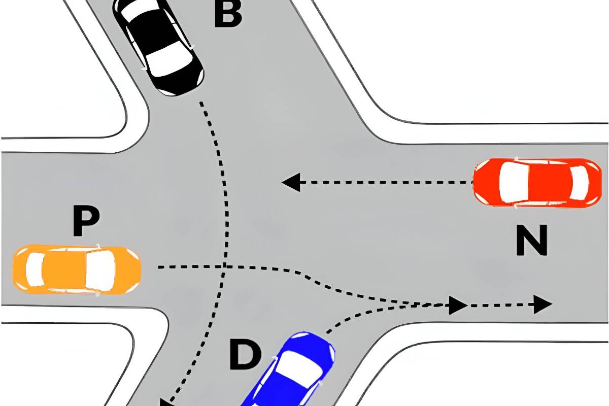 Immagina la scena: quattro auto (B, N, P, D) che si trovano a un incrocio senza semaforo. Le traiettorie sono già segnate, ma capire chi debba muoversi per primo non è così scontato. La vettura B sta svoltando a sinistra, la N prosegue dritta, mentre P e D sono pronti a immettersi nella stessa strada. Una situazione che, a prima vista, sembra semplice, ma che nasconde una trappola insidiosa per chi non conosce alla perfezione le regole della precedenza.