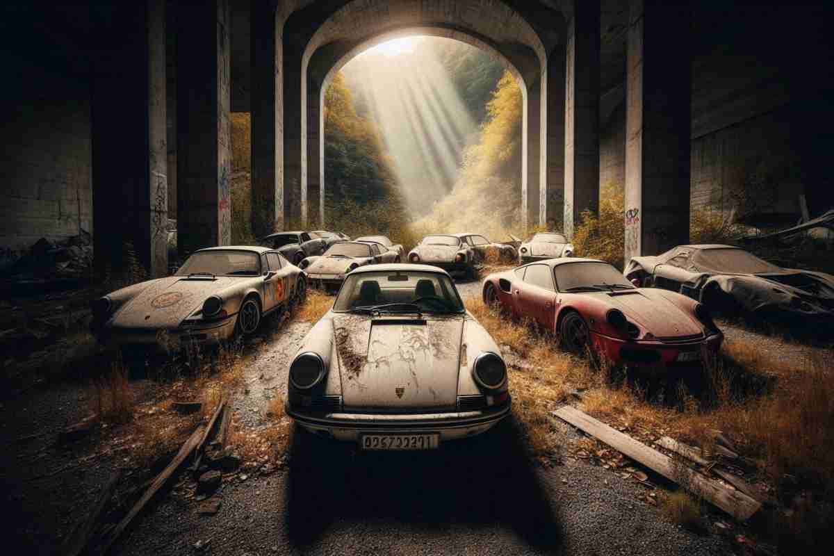 Si prevede un’asta rovente per gli amanti delle storiche auto Porsche. In questo cimitero di vecchie supercar non mancano anche delle Ferrari.