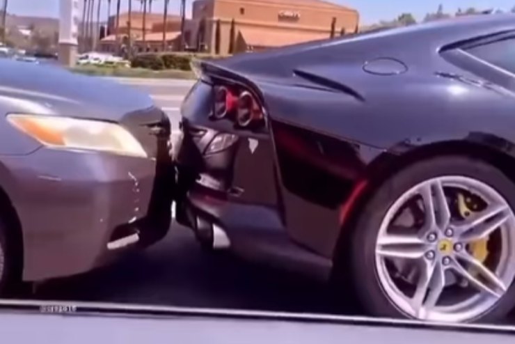 Ferrari sbaglia marcia: va in retro e colpisce l’altro veicolo