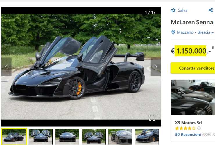 La McLaren Senna scatta da 0 a 100 km/h in 2,8 secondi e presenta una velocità massima di 335 km/h. Ogni auto è stata costruita a mano presso il McLaren Production Centre di Woking. La proposta su Autoscout24 è di 1.150.000 Euro e la vettura si trova a Mazzano nel bresciano.