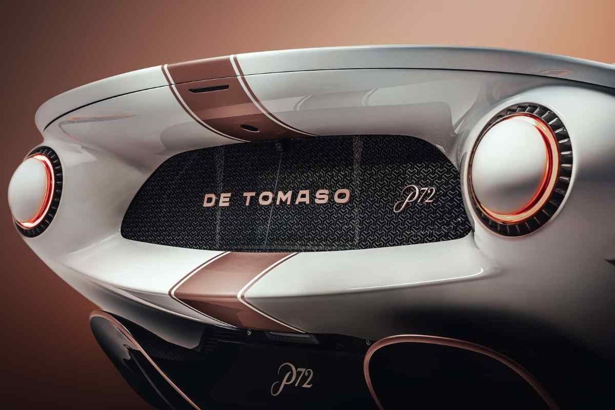 La De Tomaso ha svelato la sua prima P72 stradale. Le consegne dovrebbero arrivare entro fine 2025. Riprendendo le linee del prototipo, la prima auto di serie di De Tomaso ha un look moderno retrò che rispetta la tradizione. Lo stile trae ispirazione, infatti, dalla mitica De Tomaso P70 del 1965, nata dalla collaborazione tra il fondatore Alejandro De Tomaso e Carroll Shelby. L’esemplare 2.0 presenta una verniciatura bianca brillante con strisce, calotte degli specchietti, dettagli e cerchi in oro rosa. I cerchi ricordano quelli della P70 originale.