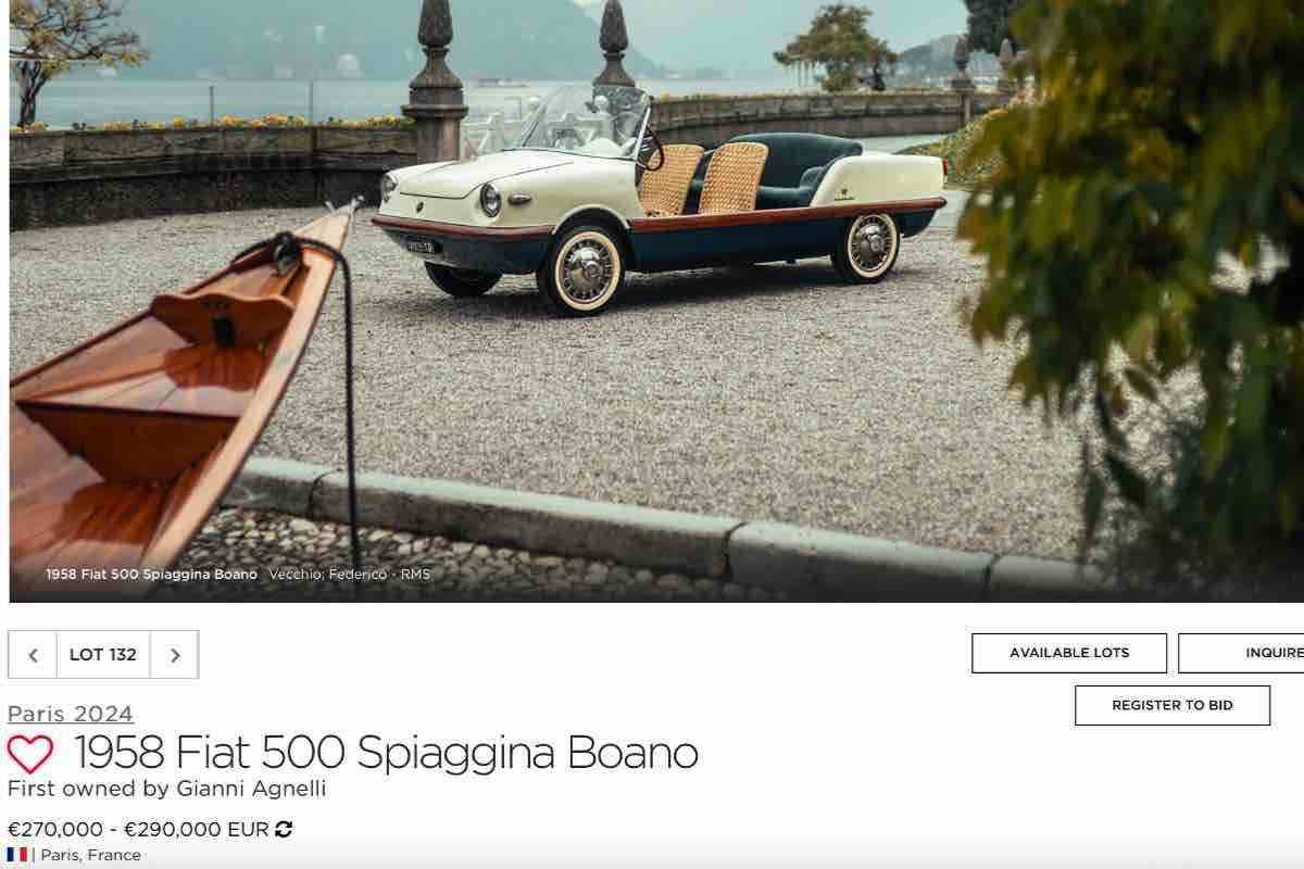 Amante della dolce vita e delle belle auto nella sua collezione non mancò un modello unico o quasi, si tratta infatti di una spiaggina su base Fiat 500 che a breve, andrà in vendita ad un prezzo stratosferico, di ben 290mila Euro da RM Sotheby’s. La piccola vettura fu progettata da Mario Boano nel 1958 in due esemplari, il secondo fu comprato da un altro famoso milionario dell’epoca come Aristotele Onassis. Il primo amore non si scorda mai.